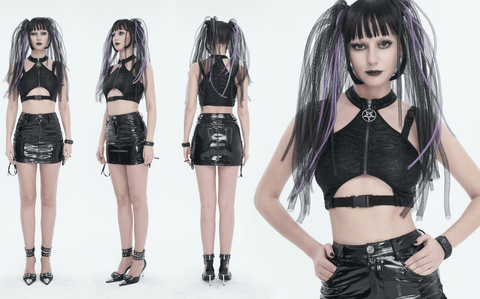 Devil Fashion Women's Punk Cutout Star Buckle Vest