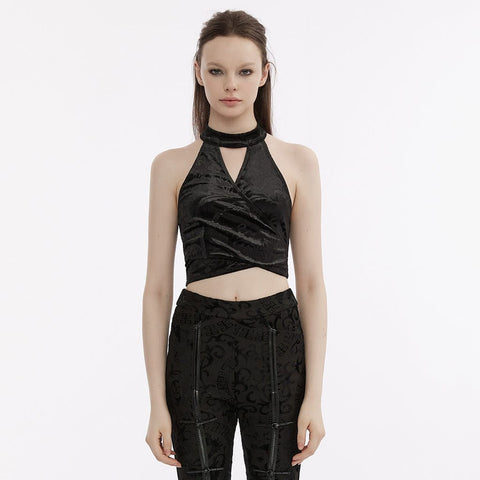 Women's Gothic Strappy Halterneck Embossed Velvet Bustier