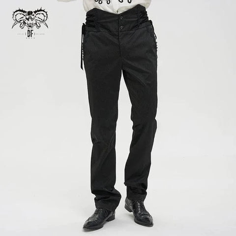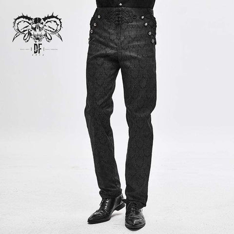 Jacquard pants are often associated with luxury and elegance. It typically features intricate patterns woven into the material, which can complement the elaborate and ornate style commonly found in Gothic fashion. Pairing a jacquard fabric, known for its intricate designs, with a gothic vest made from a different material, such as velvet or brocade, can create an interesting contrast in textures. This contrast can add visual appeal and depth to the costume, enhancing the gothic aesthetic.
