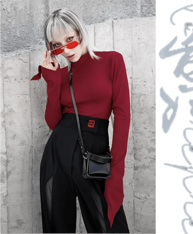 When ruffles, mesh, and cutouts come together on a punk design, they deliver a shirt that is super trendy and interesting. Showing a little skin to the sides is very sexy, and the unique look of the top is more than eye-catching.