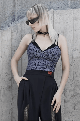 Women's Grunge Zebra-stripe V-neck Slip Tops