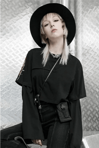If you are looking for a T-shirt that you can wear it all the year round, than this is the right choice. The removable sleeves make it look different and unique each time you wear it. The goth design to the sleeves is just so cool!