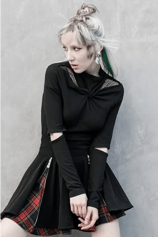 Women's Gothic Ripped Dresses Splicing Mesh T-shirts