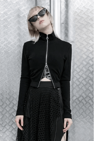 Adding some animal print to the gothic and punk style is easy when you have a top like this. Delivering a fake two-piece, this is a type of shirt that has been very popular during the 90s. The under part of the skirt is plain black, and the top comes covered in interesting zebra print.