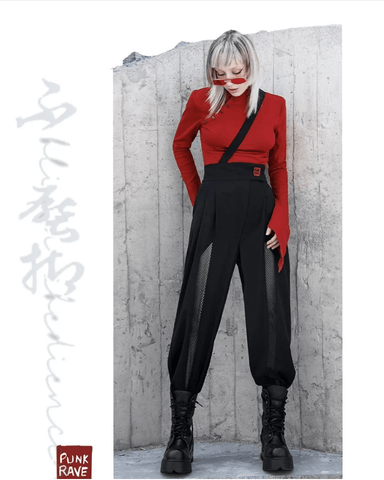 Women's Gothic Strappy Splicing Mesh Straight Pants