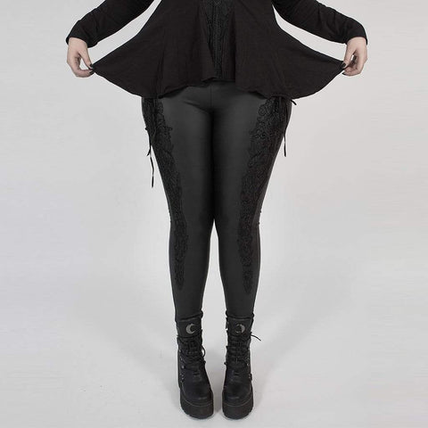 For the scary and dramatic effect, these leggings will catch eyes and bring some Gothic vibe to the outfit. As an additional detail, the front lacing is ultra dominant and punk.