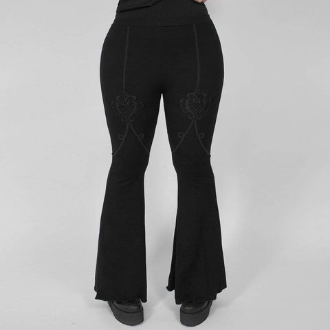 When the '70 hippie style comes together with the Gothic style, it delivers these unique plus-size pants that have one detail that stands out – flower embroidered details. The high waist is perfect for the plus-size silhouette.