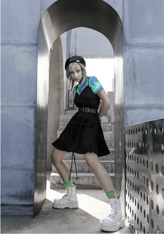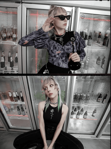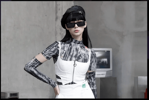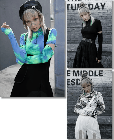 The trend of tie-dye print is popular in the punk and goth styles, so if you want to add some stylishness and futuristic look, this T-shirts are a cool way to do so. The removable sleeves deliver so many different styling options.
