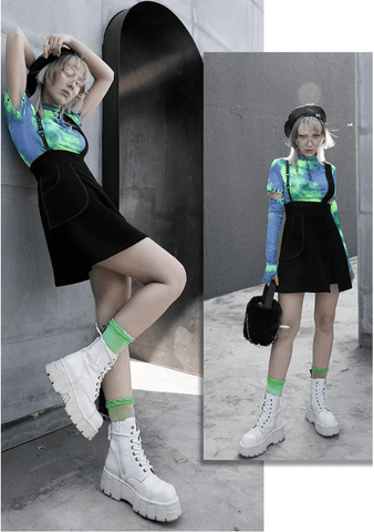 Women's Grunge Slit A-line Suspender Skirts