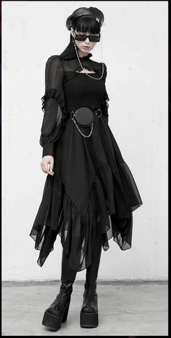 Women's Gothic Mesh Splicing Ripped Ruffles Irregular Dresses