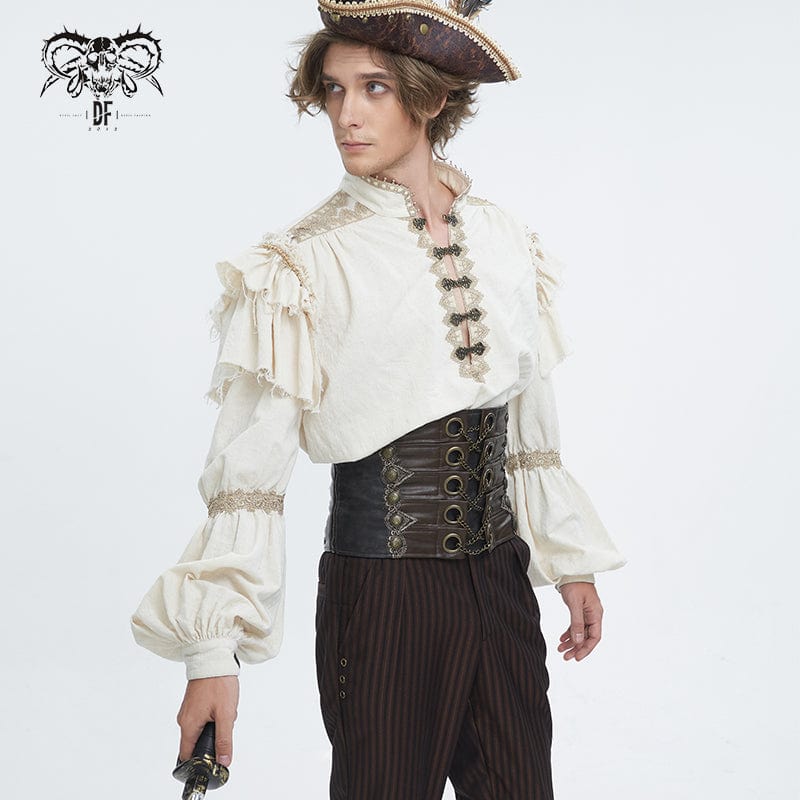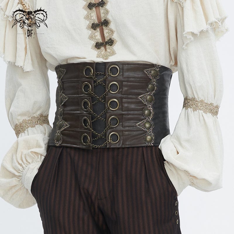 The front of the belt is adorned with crossed chains, exuding a punk goth aesthetic that’s both rebellious and stylish. Gold lace and exquisite studs provide intricate detailing, enhancing the belt’s gothic Victorian appeal. The zipper closure on the side ensures a secure fit, while the adjustable lace-up at the back allows for a customized and comfortable fit.