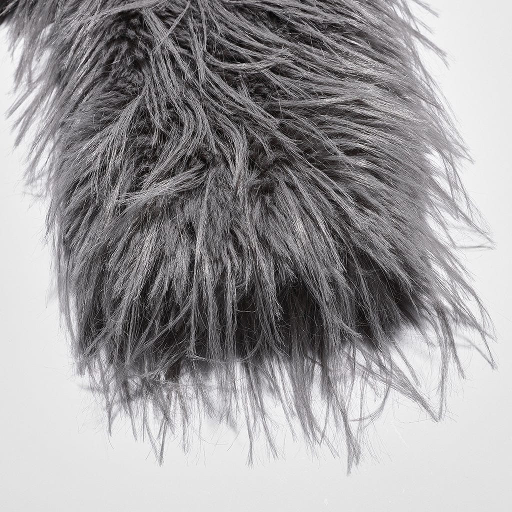 Women's Gothic Faux Fur Splice Faux Leather Coat Grey