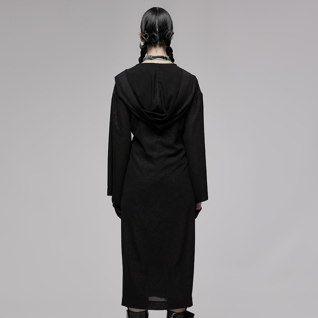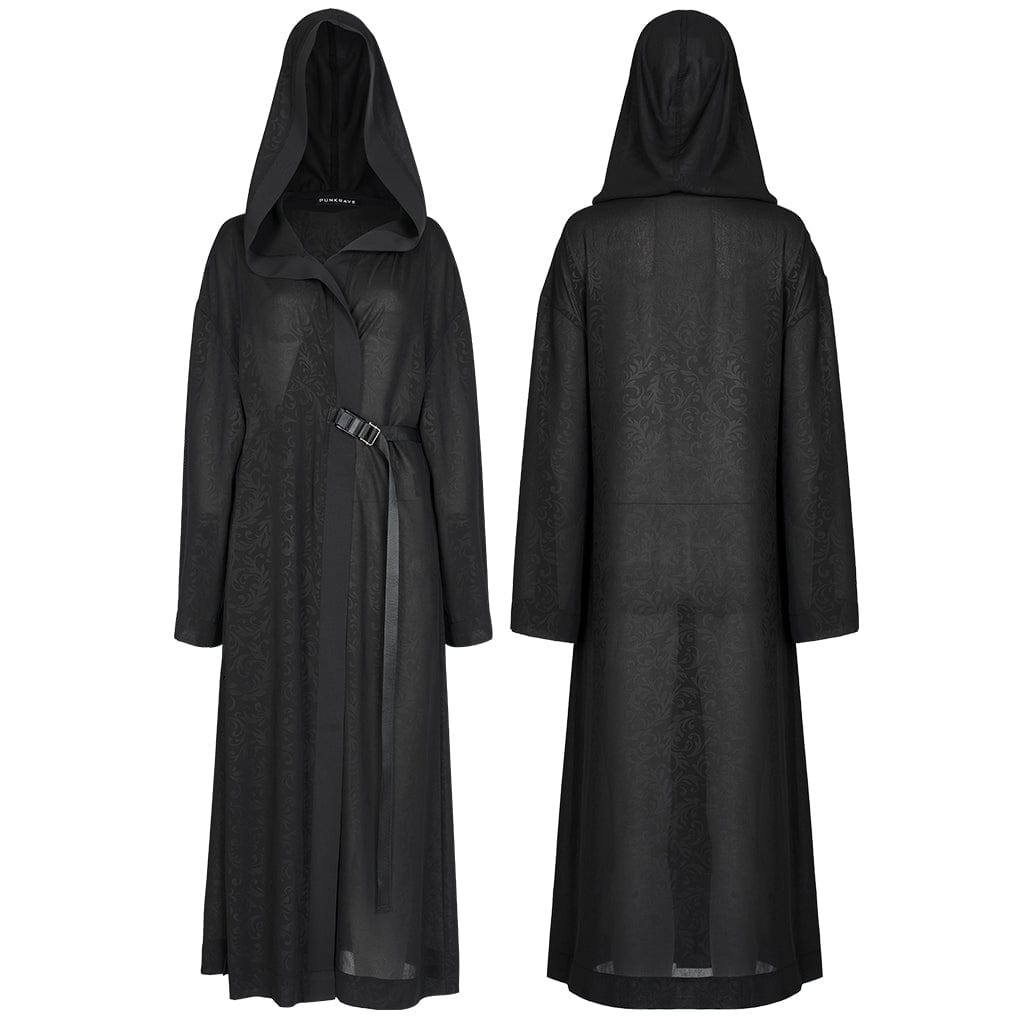 Women's Gothic Floral Printed Chiffon Kimono Coat with Hood