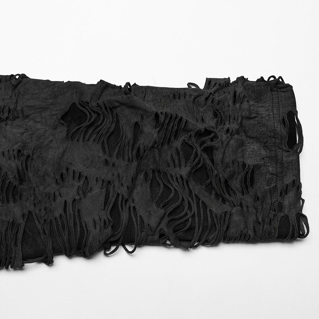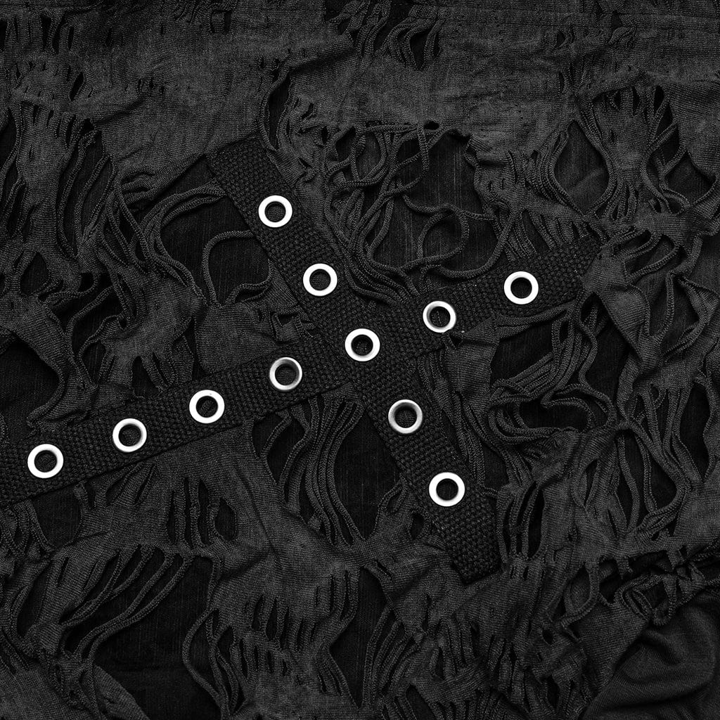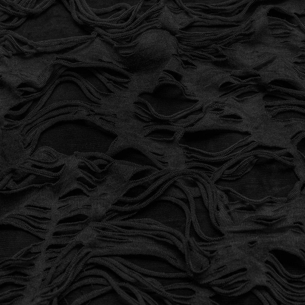 Women's Punk Ripped Eyelet Ruffled Coat with Hood Black