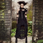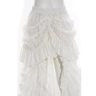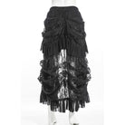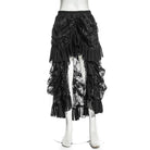 Description:This skirt is a throw back to the Victorian era, with layers of lace stitched, tucked and ruched together to create a skirt that is stunningly feminine. The ankle length asymmetrical skirt is perfect gothic attire for a party.