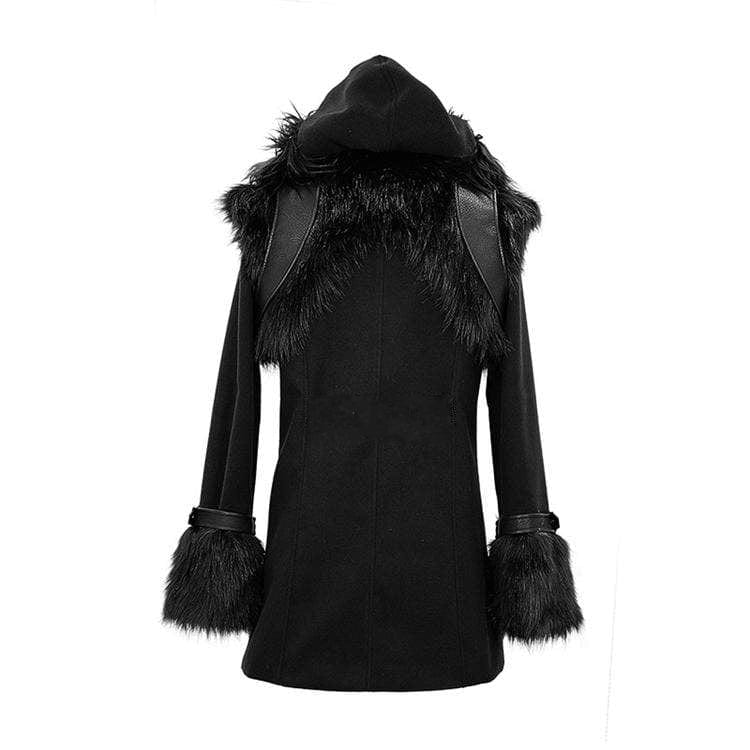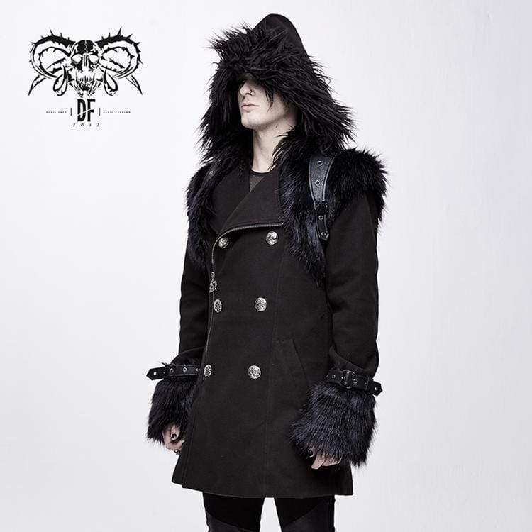 Men's Goth Double-breasted Faux Fur Hooded Coat