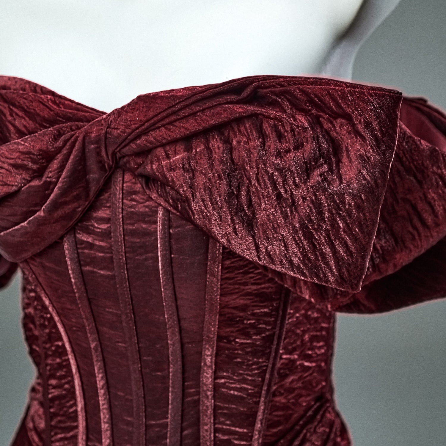 Women's Custom-made Gothic Bowknot Lacing-up Strapless Tuxedo Red Gown