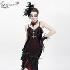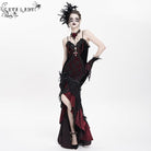 Women's Gothic Floral Embroidered Cross Ruffle Long Slip Dress Red