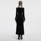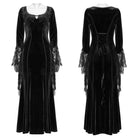Women's Gothic Floral Embroidered Lace Splice Velvet Gown Dress Black