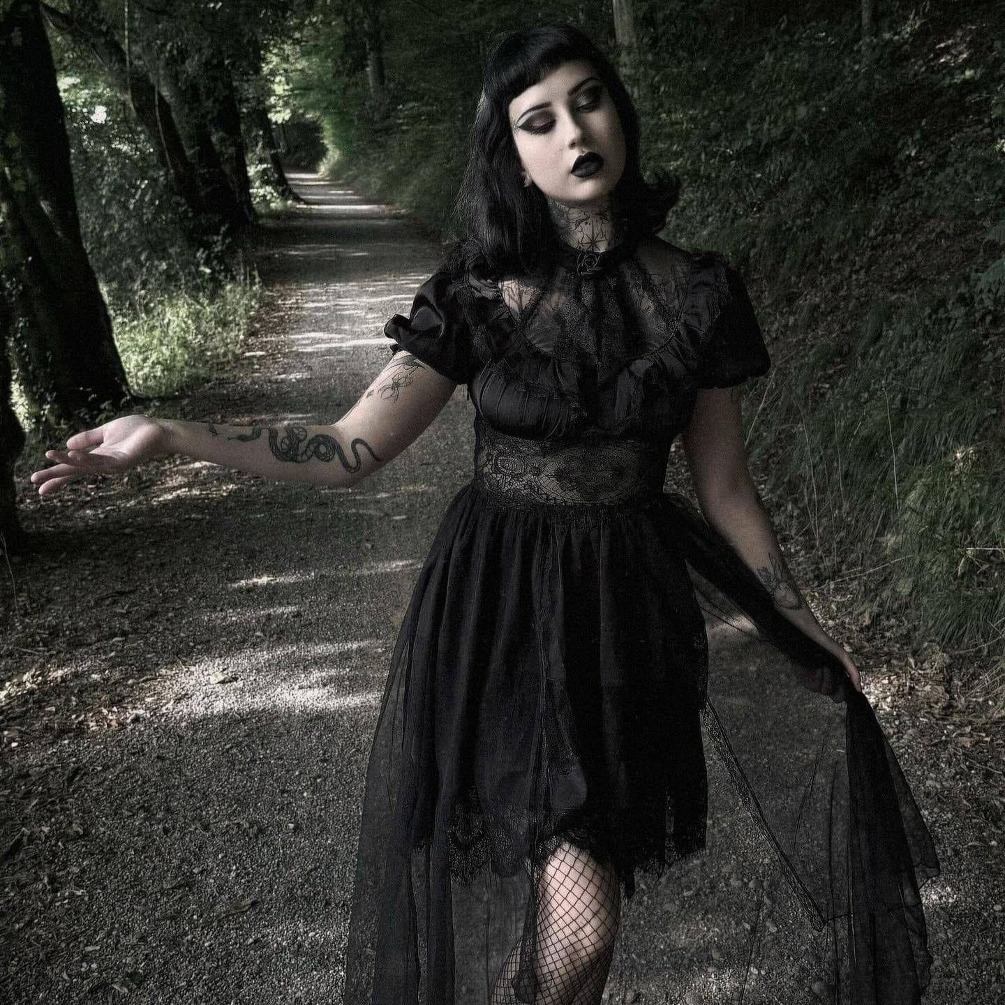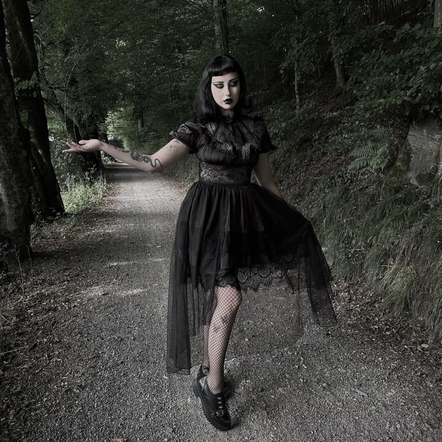 Women's Gothic Puff Sleeved High/low Multilayer Chiffon Dress
