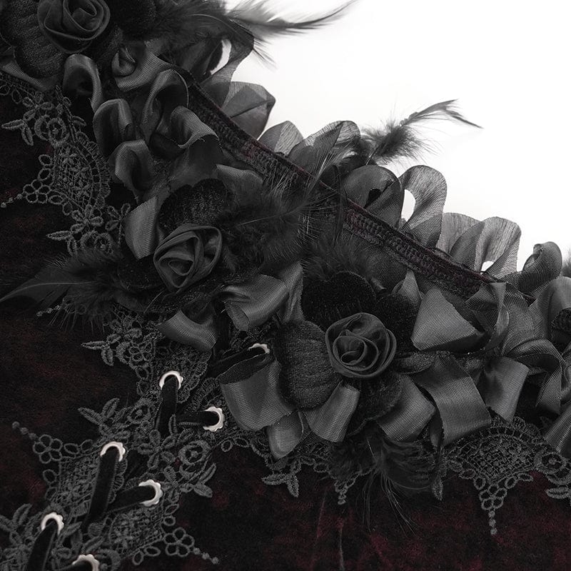 Women's Gothic Off-the-shoulder Ruffled Velvet Shirt Red