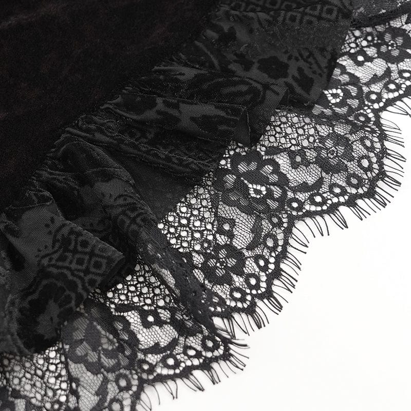 The asymmetrical lace hemline at the back cascades down in a layered effect, creating a striking silhouette that pairs beautifully with high-waisted skirts, gothic trousers, or layered petticoats. Perfect for gothic-themed events, renaissance fairs, Victorian balls, or even alternative streetwear fashion, this elegant top exudes a mysterious, dark allure.