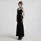 Women's Gothic Floral Embroidered Velvet Fishtail Slip Dress Black