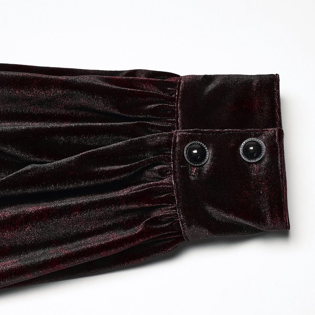 Men's Gothic Turn-down Collar Puff Sleeved Velvet Shirt Black-Red