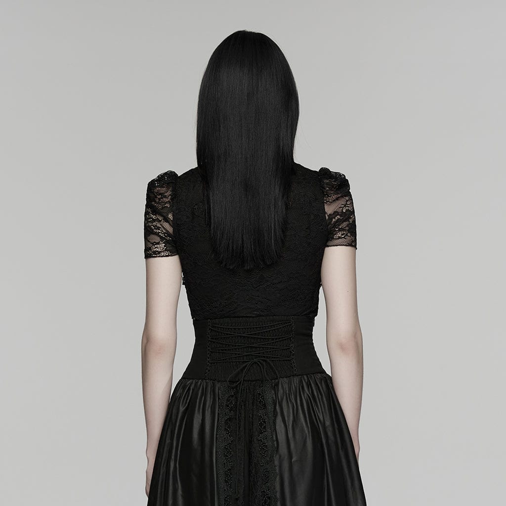 Women's Gothic Cutout Lace Short Sleeved Top