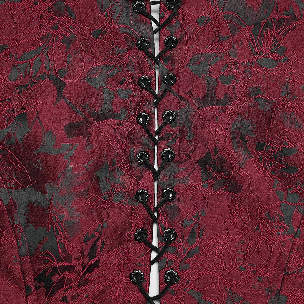 Women's Gothic Embroidered Jacquard Lace-up Vest Black-Red