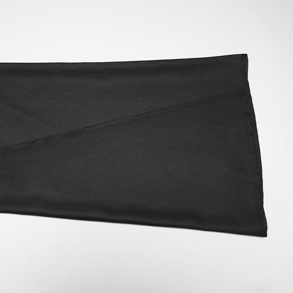 Crafted from smooth polyester and sheer chiffon, it features a plunging V-neck with lace-up front, off-the-shoulder cutouts, and flowing, wide sleeves. The back has a sleek cutout + lace-up closure, while the high waist and side slit amplify its slim fitted silhouette—finished with structured fabric accents for a sharp, punk goth vibe.