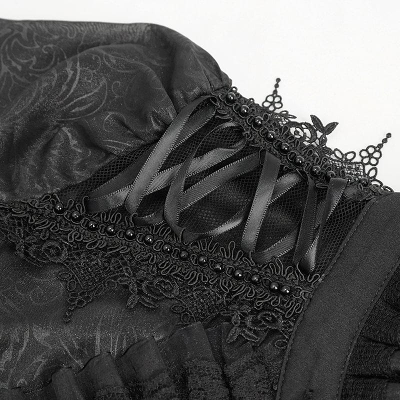 Women's Gothic Strappy Stand Collar Ruffled Shirt