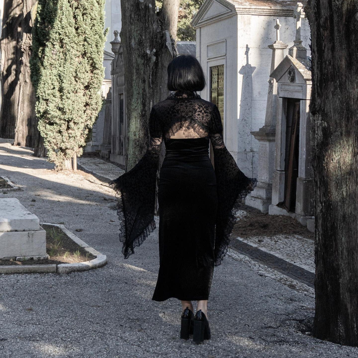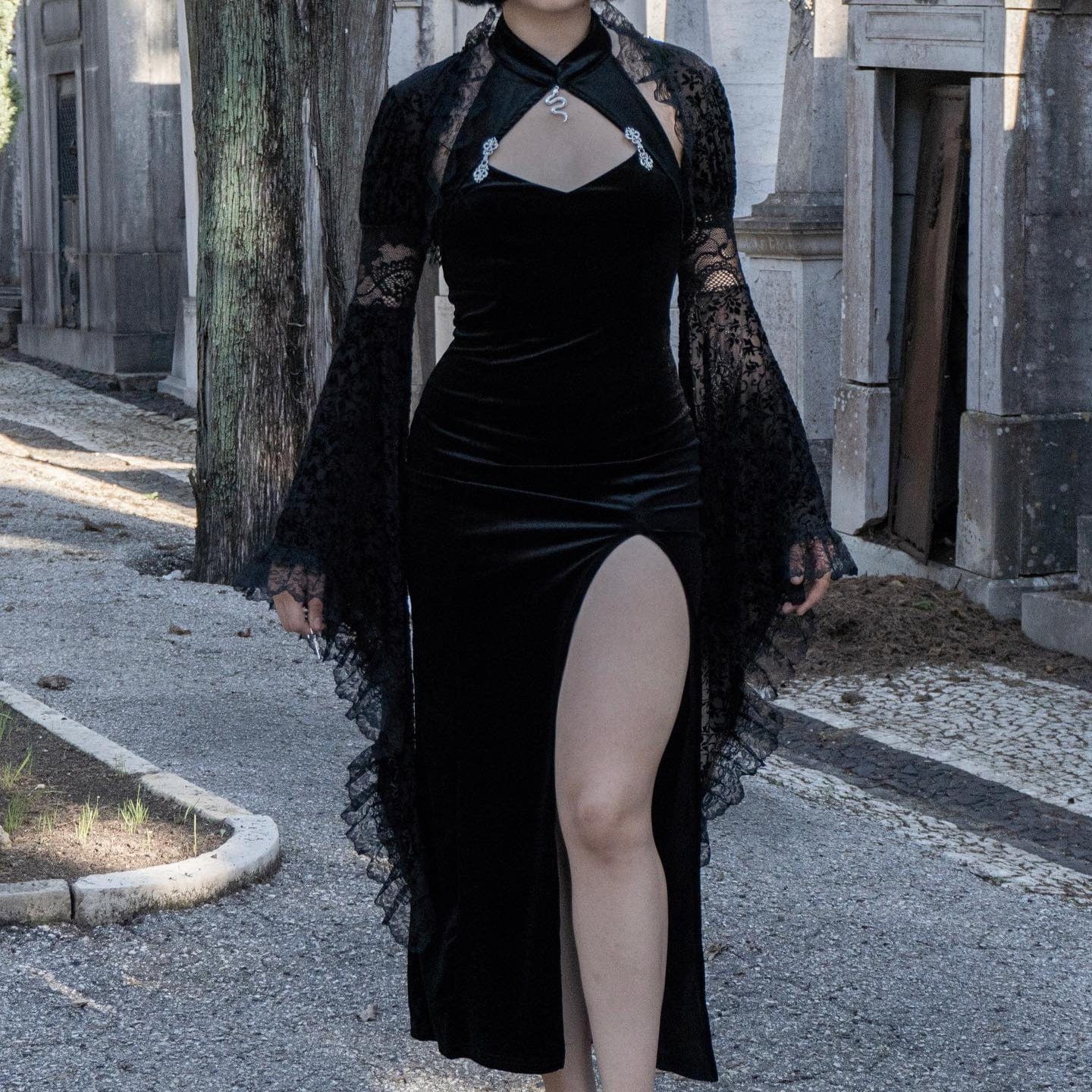Women's Gothic Halterneck Cutout Slit Maxi Dress