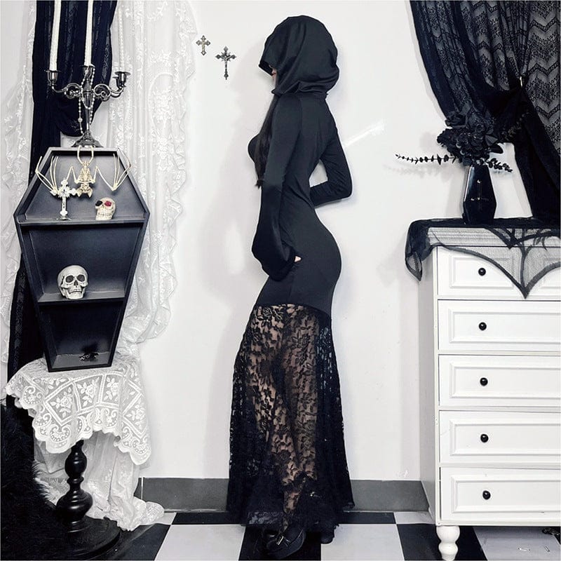 Women's Gothic Lace Splice Fishtailed Dress with Hood