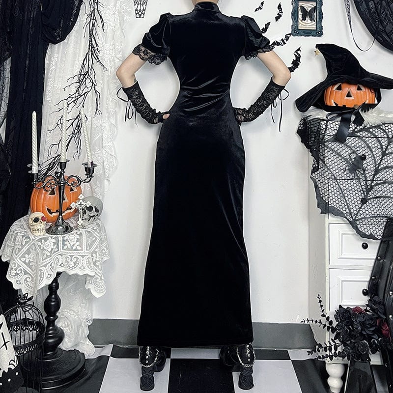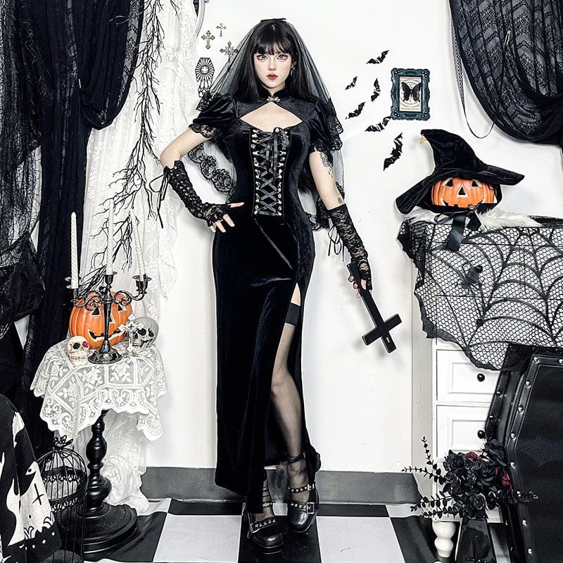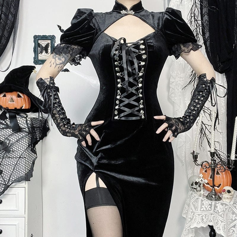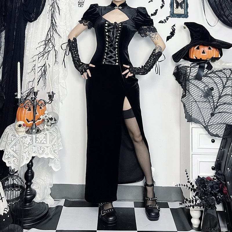 Women's Gothic Lace-up Cut-out Maxi Dress