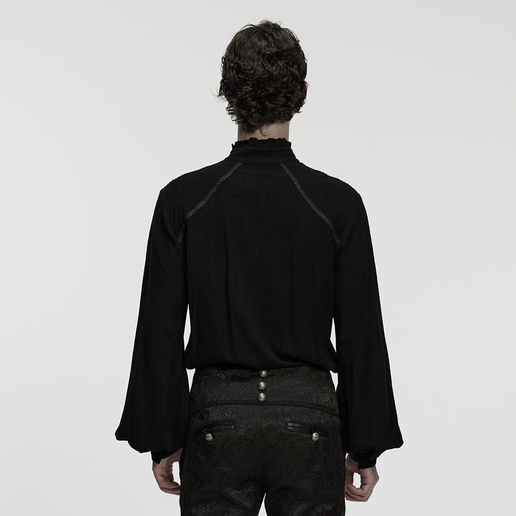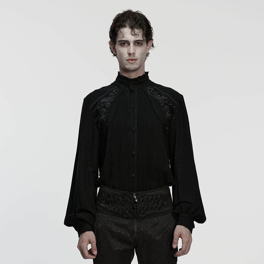 Men's Gothic Floral Decal Stand Collar Lantern Sleeved Shirt Black