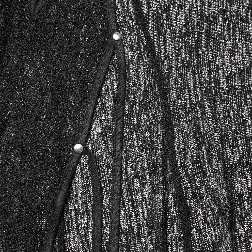 Crafted from a lightweight blend of polyester and elastane, this cardigan offers a soft, stretchy feel that drapes beautifully over any outfit. The open-front design and delicate sheer texture make it a versatile piece, while the side eyelet lace-up closures add a subtle punk goth edge.