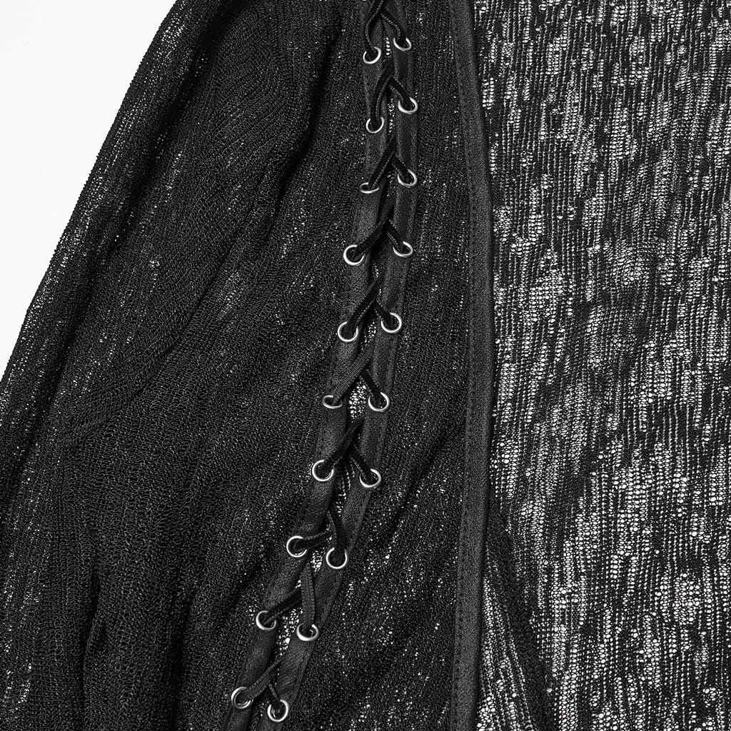 These Women's Gothic Eyelet Sheer Long Sleeved Cardigan are an essential layer for any gothic or alternative wardrobe, featuring semi-sheer fabric and edgy side eyelet lace-up details for a hauntingly elegant gothic grunge aesthetic. The midi-length silhouette and slim-fitting long sleeves create a sleek, modern goth vibe that’s perfect for everyday wear or darkly romantic outings.