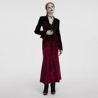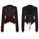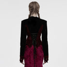 Women's Gothic Floral Embroidered Lace-up Velvet Jacket Red