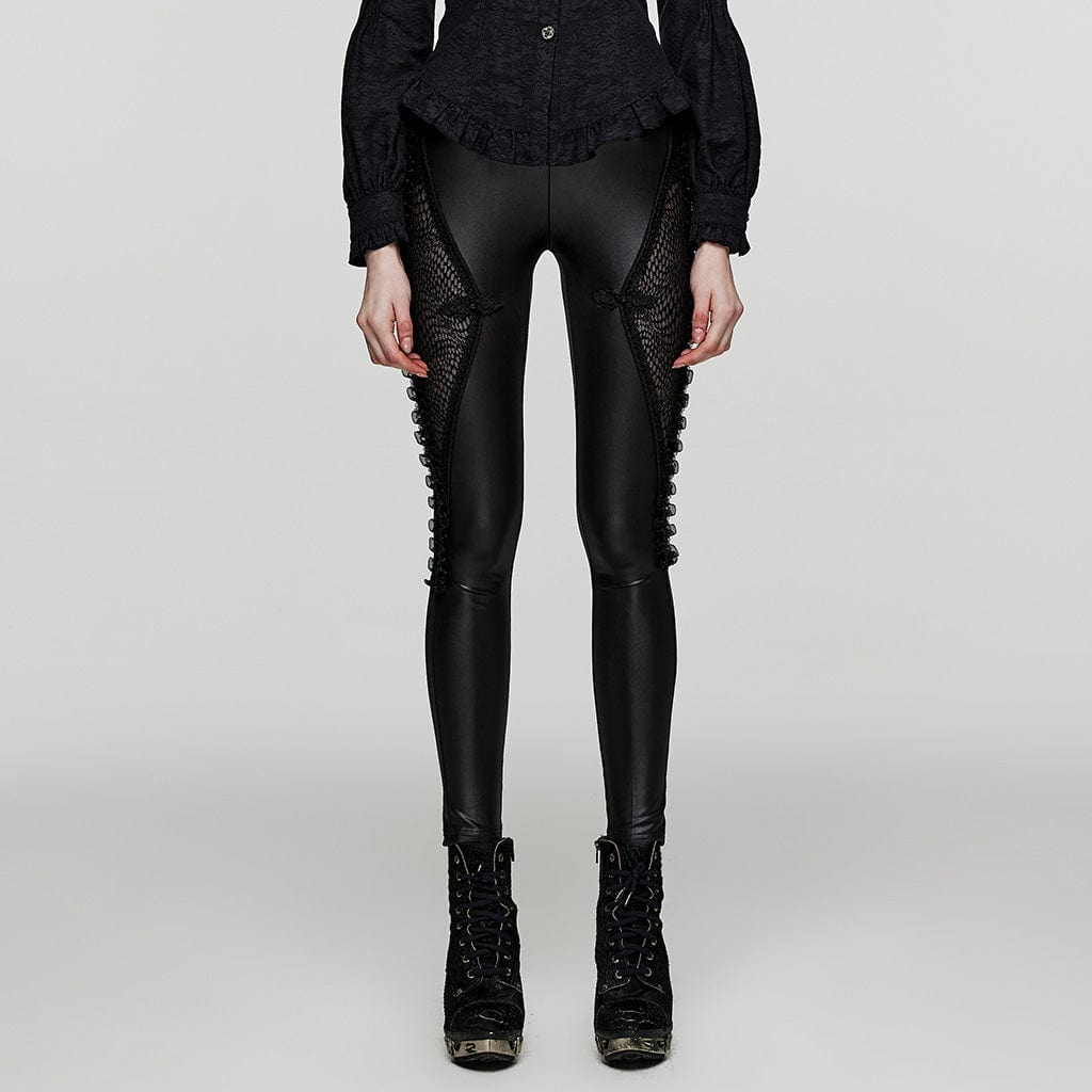 Women's Punk Ruffled Lace Splice Mesh Leggings