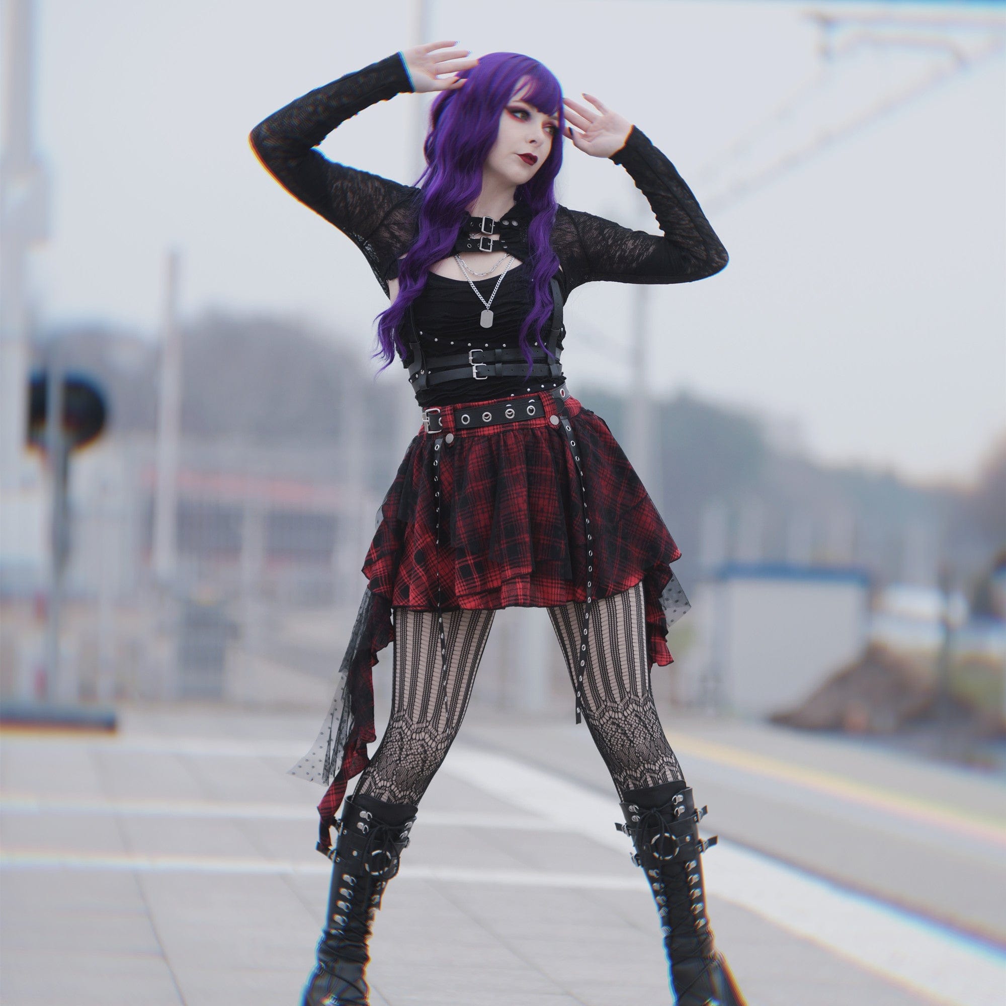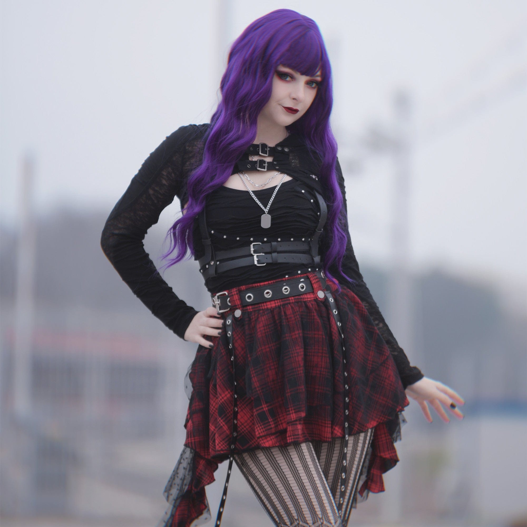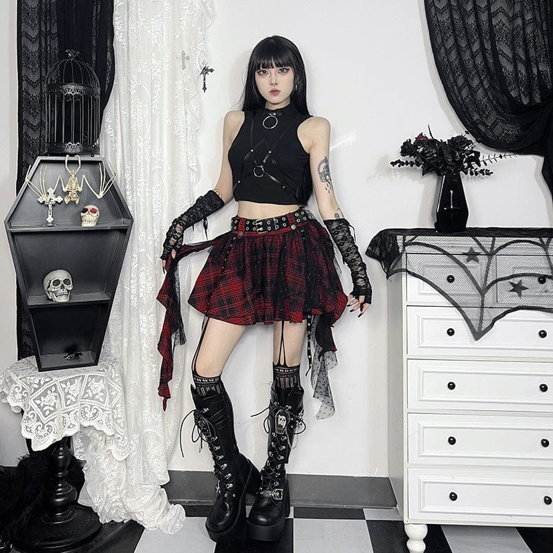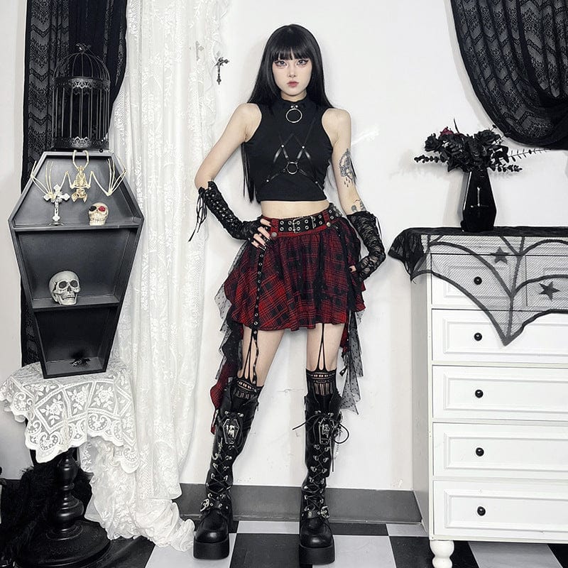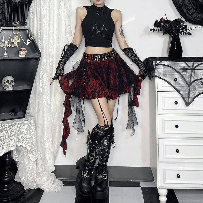 Women's Grunge Mesh Grid Bubble Short Skirt Red