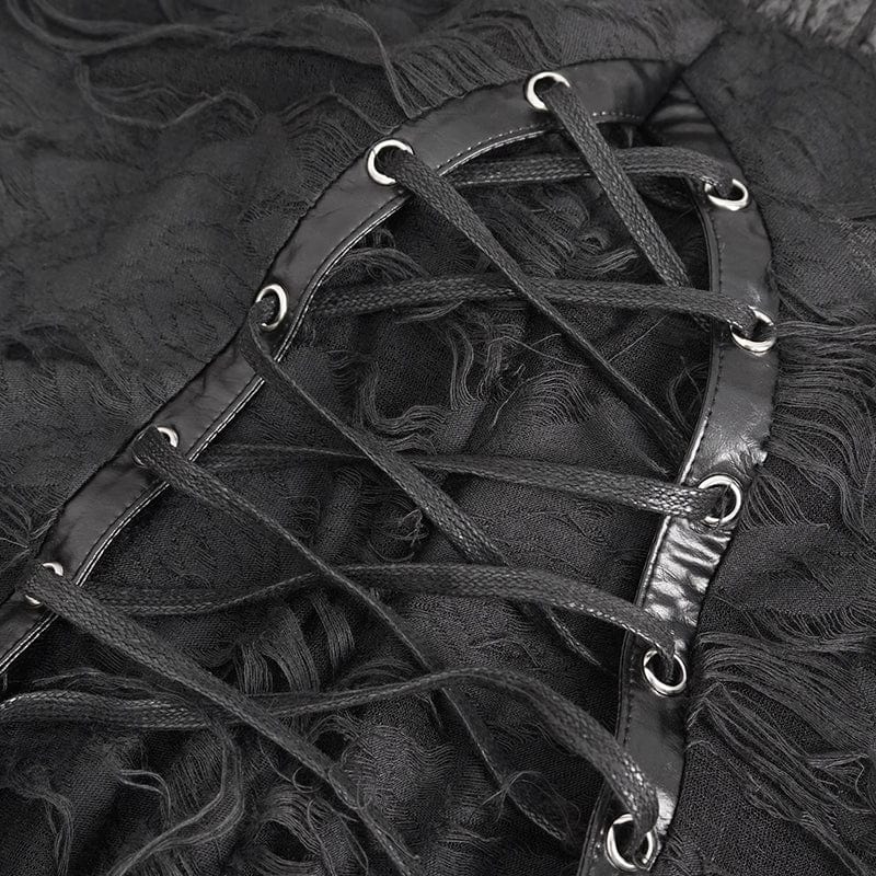 Women's Gothic Lace Ripped Hem Dress with Arm Sleeves