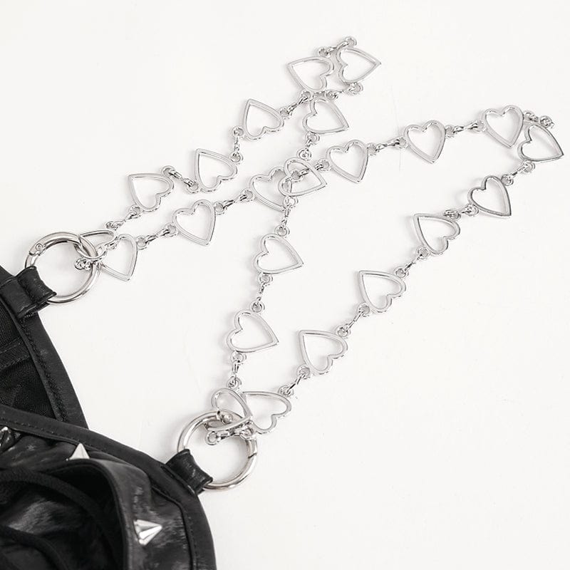 Women's Gothic Mesh Stud Faux Leather Hem Dress