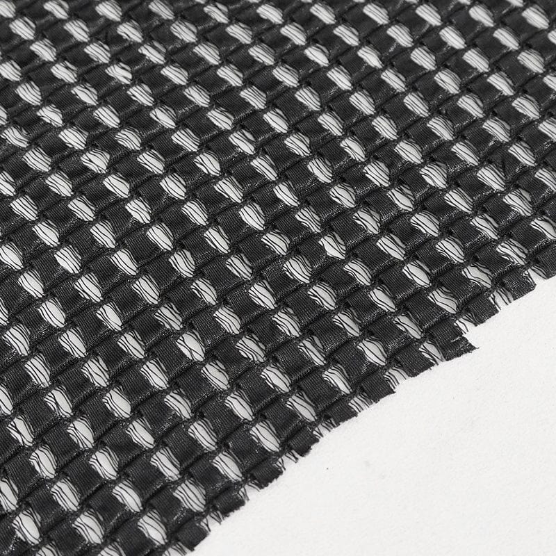 The irregular gothic skirt is made of crackled fabric and patchwork with mesh. A big buckle and elastic band on the waist for adjustment. Lace-up on the left and draped hem. Available in two colors.