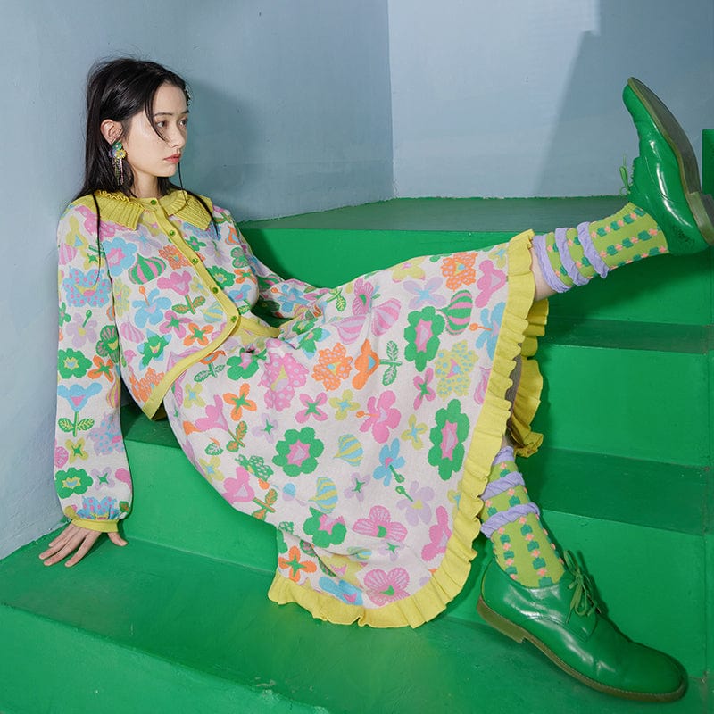 Women's Chromatic Floral Printed Ruffled Cardigan