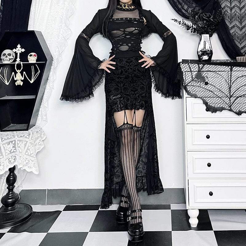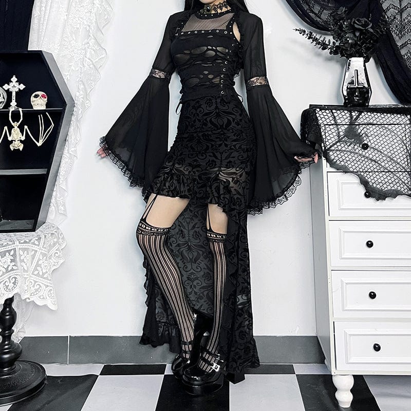 Women's Gothic Ruffled High/Low Mesh Skirt