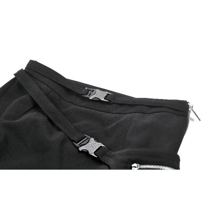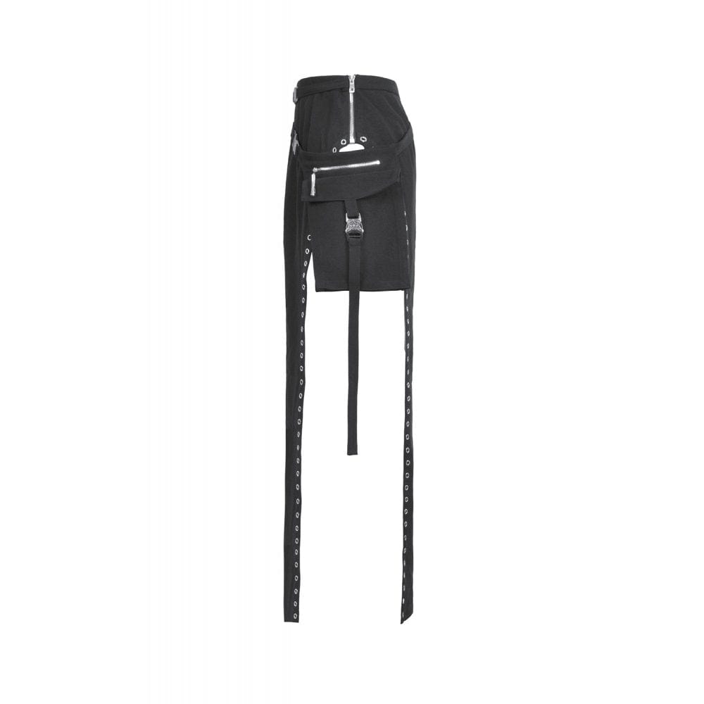 Women's Punk Buckle Strap Eyelet High-slit Midi Skirt with Detachable Pocket