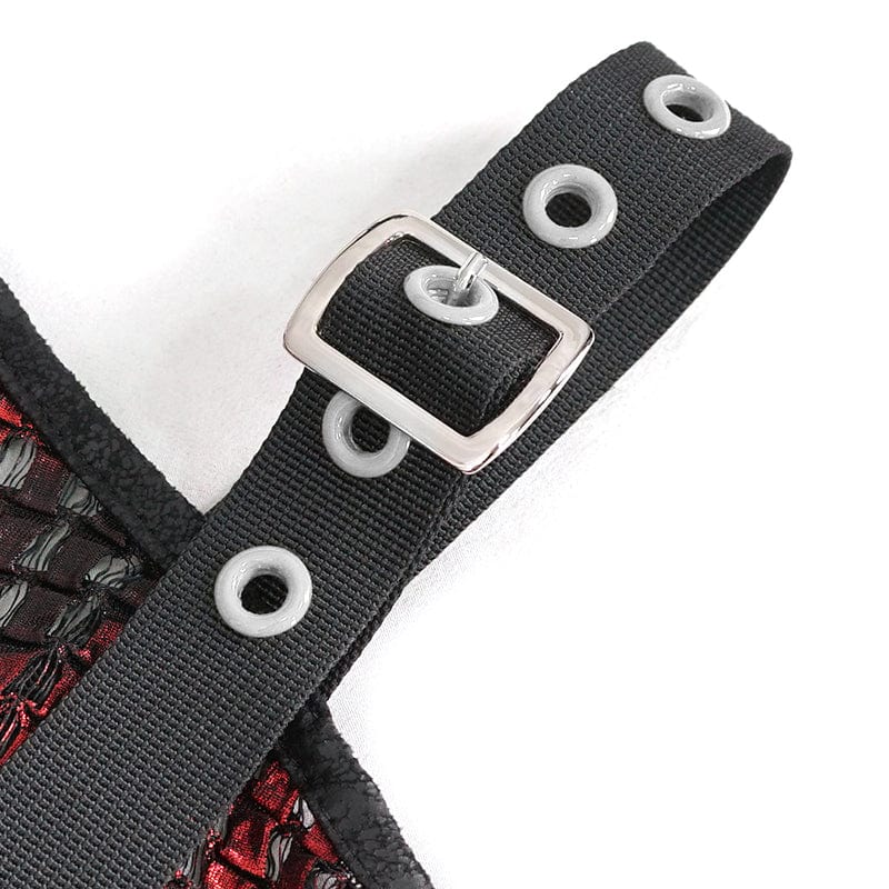 Women's Gothic Off Shoulder Buckle Sheer Crop Top Red
