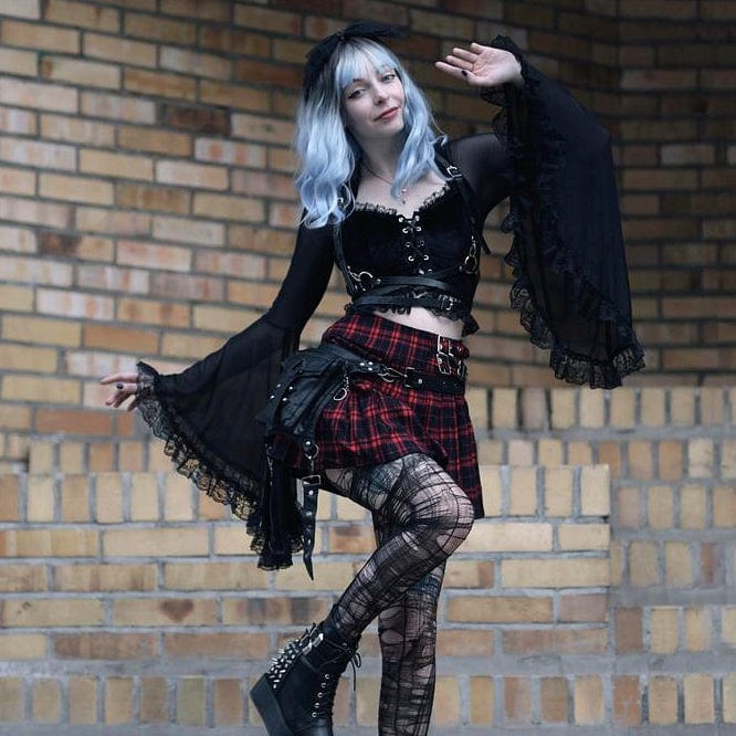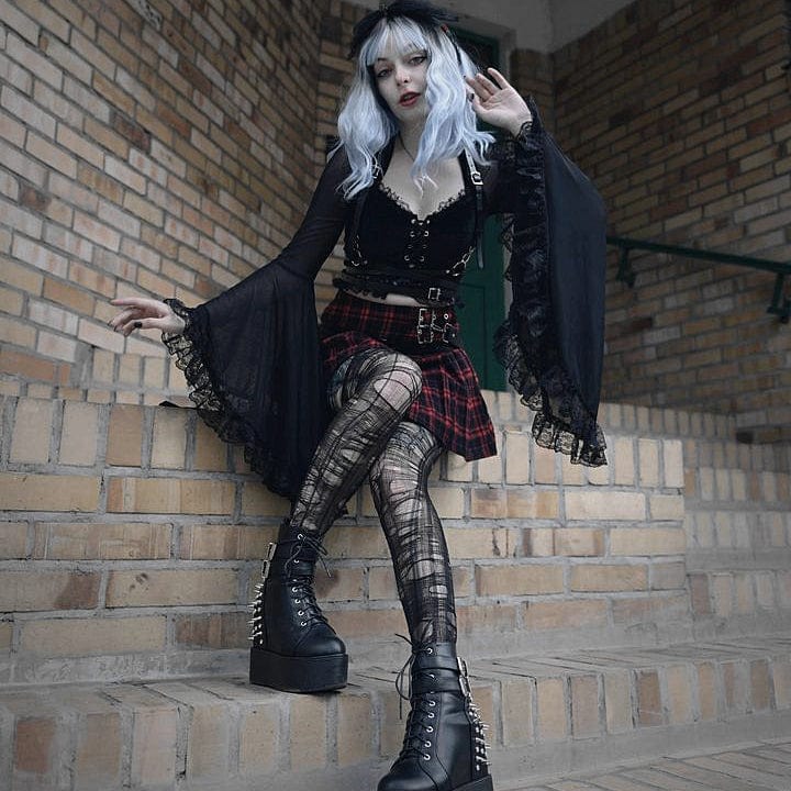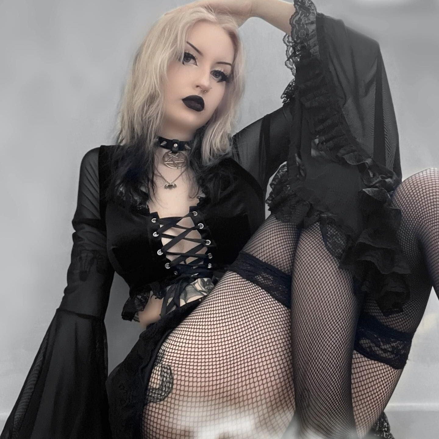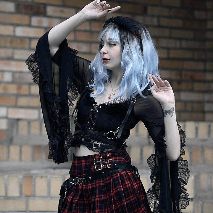 Women's Gothic Strappy Flared Sleeved Lace Shirt