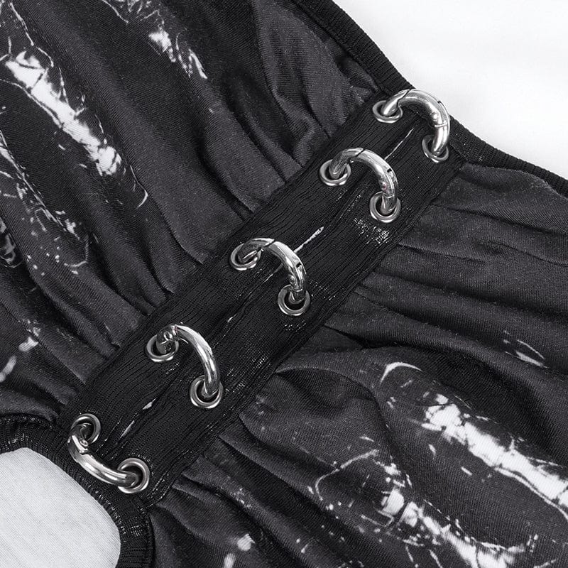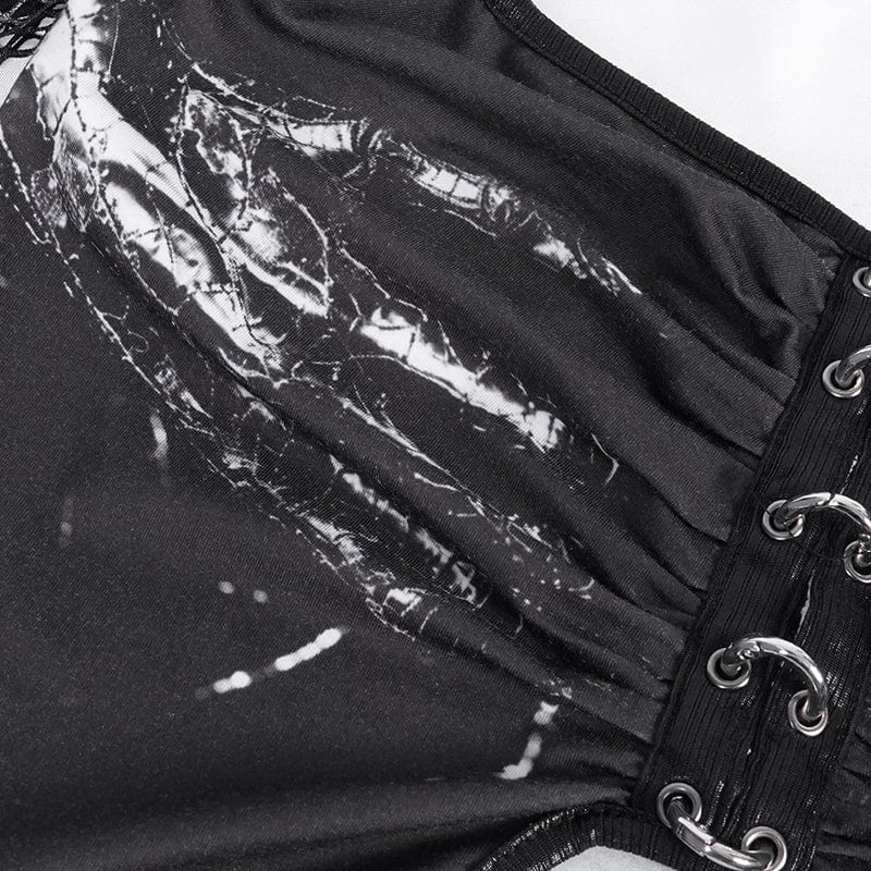 Women's Punk Cut-out Mesh Long Sleeve Crop Top
